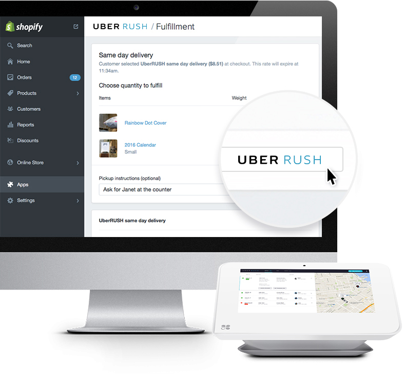 UberRUSH integrates with platforms like Shopify and Clover so you can build deliveries right into your day-to-day operations. No need to worry about complicated set-up or installation.